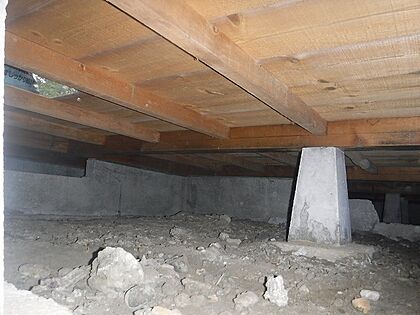 【床下】中古住宅の3大リスクである、雨漏り、主要構造部分の欠陥や腐食、給排水管の漏水や故障を2年間保証します。その前提で床下まで確認の上でリフォームし、シロアリの被害調査と防除工事もおこないます。