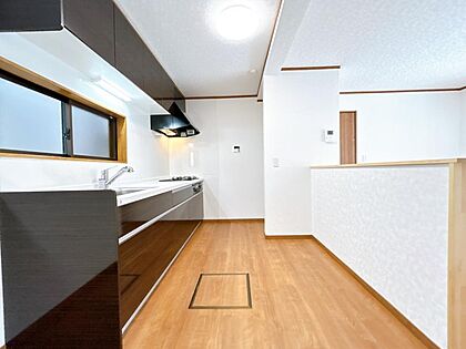 【リフォーム済】キッチンはハウステック製の新品に交換しました。引出には一升瓶や寸胴鍋など背の高いものも収納できます。天板は熱や傷にも強い人工大理石仕様なので、毎日のお手入れが簡単です。