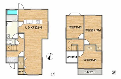 【間取図】3LDKに改装いたしました。玄関は吹き抜けになっており明るく開放的です。ぜひ一度ご覧ください。