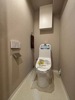 温水洗浄便座つき、生活感を隠せる蓋つきの収納あり