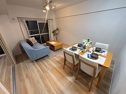 大きなソファーも広々おけます。照明器具つき。