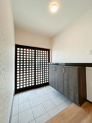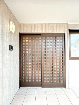 【リフォーム済】玄関内部写真です。お客様をお迎えする玄関はタイル上張りで明るくリフォーム。新品シューズBOX設置を行い収納力もバッチリです。段差が低いのでご年配の方からお子様まで安心してお住まいになれ