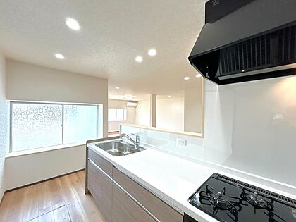【リフォーム済】別角度から見たキッチンです。新品新品交換したキッチンは3口コンロで同時調理が可能。