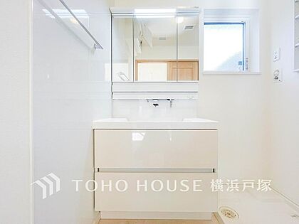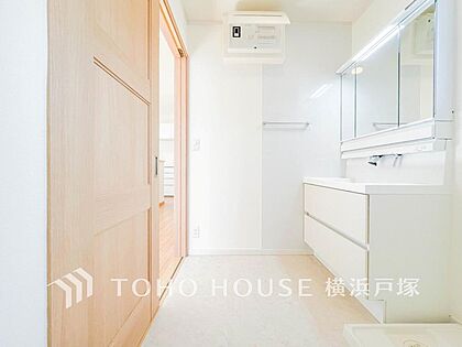 「Powder room」脱衣スペースを含む空間はゆとりの広さを設け、また洗面化粧台にも収納スペースを設ける事により、散らかりやすい洗面スペースをスッキリ保てます。