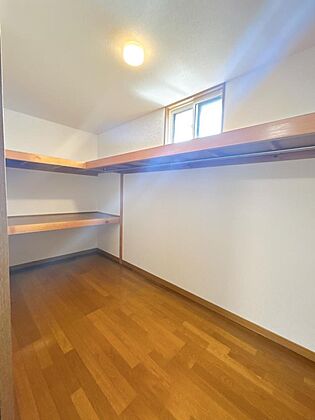 【リフォーム済】2階西側居室のWICです。季節ものの洋服やお布団などの収納に困りませんね。床クリーニング、天井壁のクロスは張り替えました。