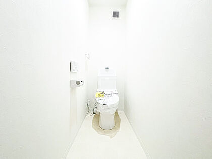 ウォシュレット付きトイレは白い色で合わせられておりますので、清潔感を感じさせます。