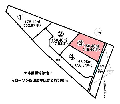 松山市馬木町にあります、4区画分譲地の1区画です♪約52坪ございます♪