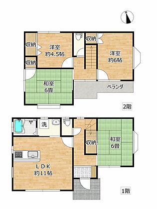 リフォーム後の間取りです。各居室に収納がある4LDKの間取です。2階にトイレがあるのもおすすめです。