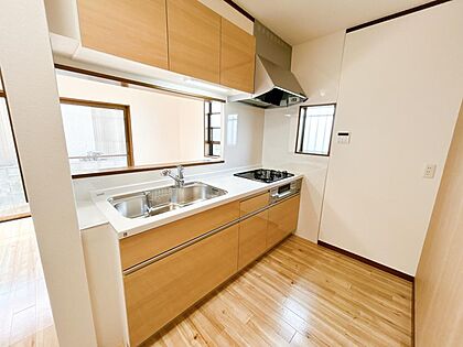 新品交換したキッチンは3口コンロなので同時進行で調理可能。大きなお鍋を置いても困らない広さです。火を使わないので小さなお子さんがいるご家庭では安心ですね。