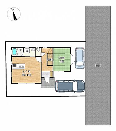 敷地図です。普通車1台、軽1台駐車可能です。