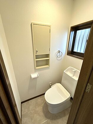 (リフォーム済)1階トイレです。ジャニス製の温水洗浄機能付きに新品交換しました。キズや汚れが付きにくい加工が施してあるのでお手入れが簡単です。直接肌に触れるトイレは新品が嬉しいですよね。