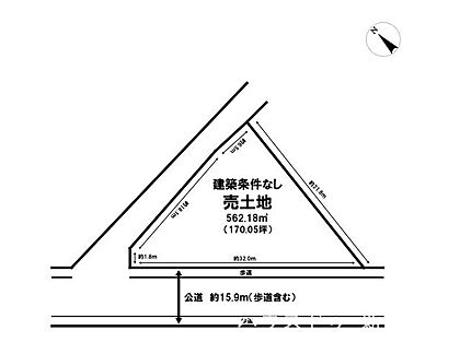 | 土地面積/坪(坪単価) | 562.18m2(登記簿)/170.36坪(4.60万円) | 代表的な接道 | 公道 南西 15.9m ※詳細は備考欄をご確認ください |