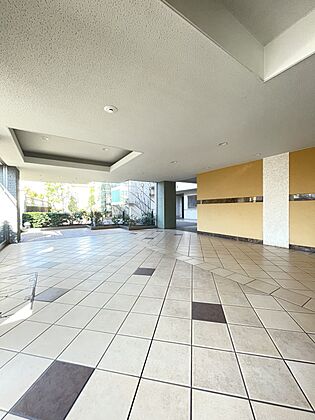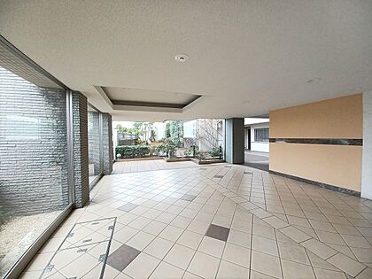 ゲートに入ると、中庭を臨むエントランスを通ってエレベーターホールへ(2024年12月撮影)