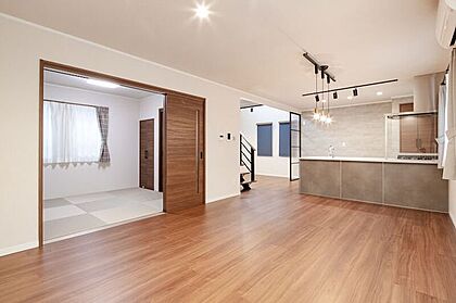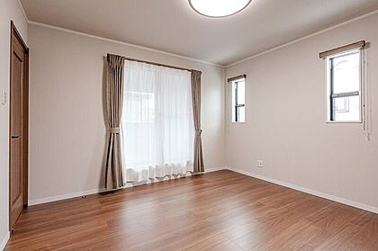 【接道】 ( 公道 西 6m ) ◎4LDKプラス4.5帖のセカンドリビングがある住まい おしゃれな家具でカフェ風にしたり、機能性を重視した家事室風にしたりマットを敷いてお子様遊園地にしてみたりと用途は様々 ◎照明・カーテンともに標準装備 法22条区域・下水道処理区域 |