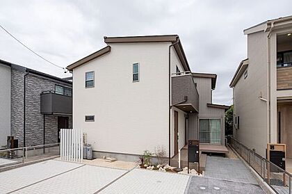 【接道】 ( 公道 西 6m ) ◎南面にデッキを設けた住まい デッキスペースでは家庭菜園、お家キャンプ、お子様の遊び場などなど、ライフスタイルに合わせた暮らし方のできるスペース ◎照明・カーテンともに標準装備 法22条区域・下水道処理区域 |