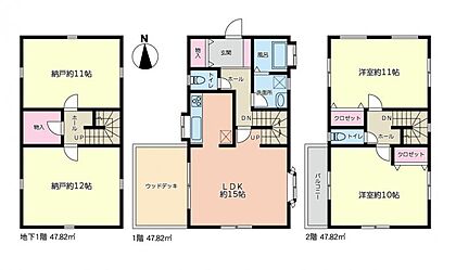 【間取り図:2LDK+2S】大型ウッドデッキ付きや全居室10帖以上など設計士の拘りが見えます!
