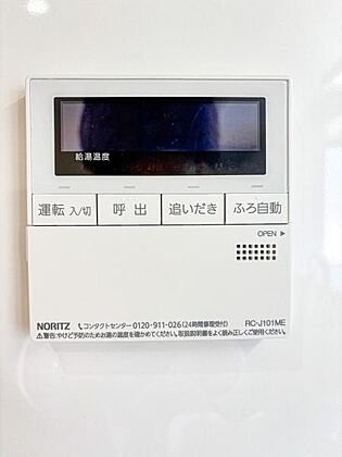 【フルオートバスシステム】浴槽の湯張りから、追い焚、足し湯までボタンひとつで操作。湯張りは一定量になるとチャイムでお知らせし、一定時間自動で保温します。