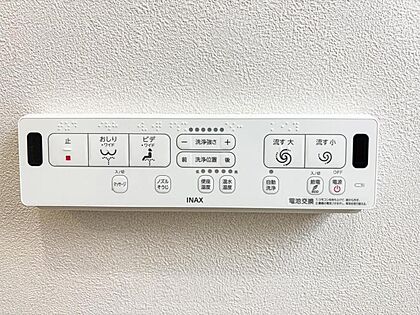 【ウォシュレット付き】洗浄、保温などの機能を備えたウォシュレット。洗浄により毎回のペーパー使用量を減らせ、保温により冬場の便座のひんやりを解消してくれる便利な設備付き