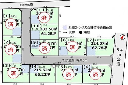 【接道】 一方 ( 公道 南 6m ) ( 公道 東 8.4m ) 各区画に雨水貯留浸透槽が入りますのでその上には建築できません。 ・開発許可番号:6つくば開指開許第223号 令和6年10月31日 ・令和7年3月末工事完了検査予定 ・8.4m公道から30mまでは第二種住居地域、以降第一種低層住居地域 ・水道加入金20mmの場合88000円要す ・電線架線完了目安時期:2025年4月30日 土地売買締結後3ヶ月以内に売主指定業者と建築工事請負契約を締結することを条件とし、期間内に請負契約が締結されなかった場合、土地売買契約は白紙に戻り、受領済の手付金等の土地代金は無利息にて返還致します。 建築条件付き (建築条件付きとは) |