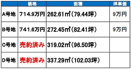 | 土地面積/坪(坪単価) | 272.45m2/82.56坪(9.00万円) | 代表的な接道 | 一方 ※詳細は備考欄をご確認ください |