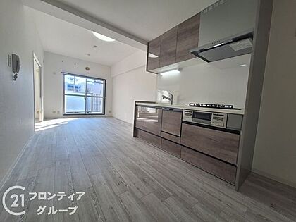 モダンなデザインのキッチンで、スタイリッシュな印象を与え、インテリアに調和します