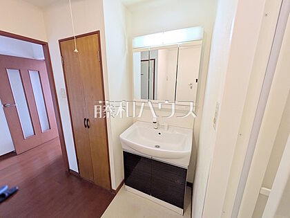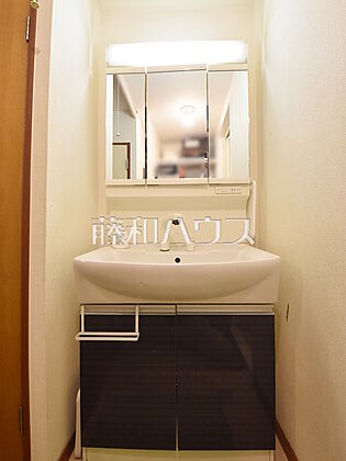 三面鏡付きの洗面台。鏡の裏にも収納があり、歯ブラシや化粧品等もすっきり収納できます。 【西武柳沢ローヤルコーポ】