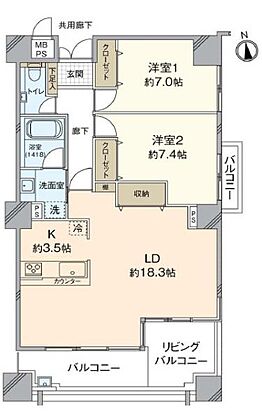 約20帖越えのLDKが特徴の2LDKです。各居室も6帖以上ございます。