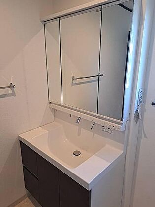 洗面化粧台は人気の三面鏡と便利なシャワー付です♪