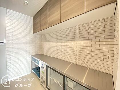 収納があるため、調味料のストックを置くのにピッタリです。食器を片づける場所にも困りません。