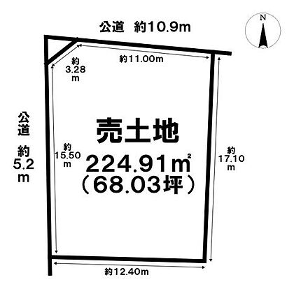 | 土地面積/坪(坪単価) | 224.91m2(登記簿)/68.15坪(58.40万円) | 代表的な接道 | 角地 公道 北 10.9m、西 5.2m ※詳細は備考欄をご確認ください |