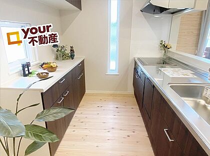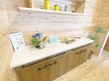 •  キッチンは使い勝手の良さを高めてトータル設計♪背面に設置したカップボードでよりお料理もしやすく◎(A棟ひらや)