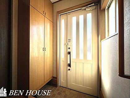 玄関・シューズボックスは家族の靴だけでなく、掃除道具や傘もスッキリと収納。