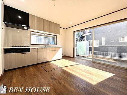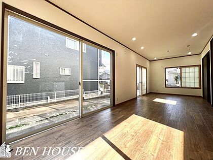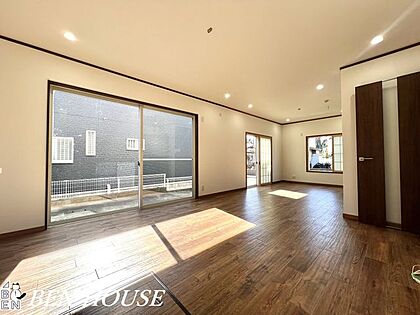 リビング・大きな窓で陽当たり良好、家族の時間ものびのび過ごせるLDKになっています。