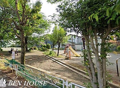 宿公園 徒歩2分。樹々に囲まれた気持ちのよい公園です。 160m