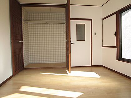 3階洋室約4帖:南西からの採光タップリで室内大変明るいです。収納がタップリ出来るクローゼットも付いています。(フロアタイル・クロス張替、照明器具付き等)