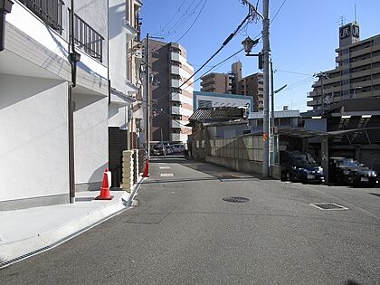 現地を含む前面道路です。前面道路は広々とした公道です。