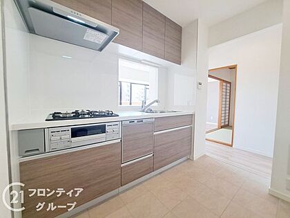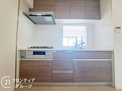 木目調のデザインが温かみを感じる、インテリアになじみやすいキッチンです
