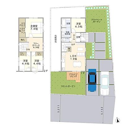 ご要望の多い4LDKタイプの間取りです。1Fの洋室は、家事室にも来客にも使える「あると便利」なお部屋です♪