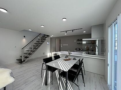 南向きで明るいLDK。階段下はリビング収納にして空間を有効活用!※同仕様の参考パースです。家具・小物は含まれておりません