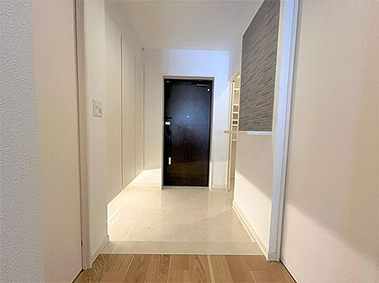 背の高いシューズクローク、エコカラットで内装にアクセント