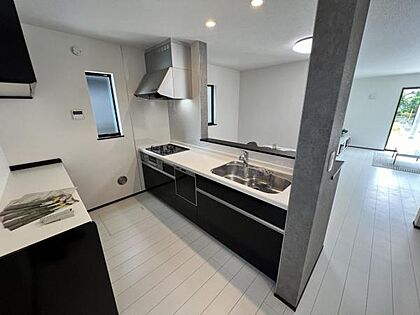 作業スペースが広く家事動線をゆったりと確保できるキッチンです。
