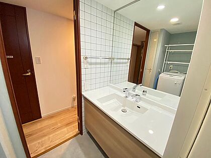 •  ワイドな洗面台は収納力もあり、いつでもスッキリとした洗面室に♪