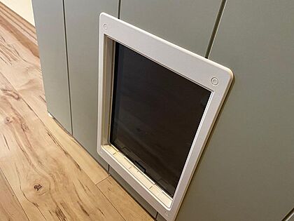 •  食器以外にも電子レンジや炊飯器などの家電が収納できたり作業台として利用できるカップボード有り。