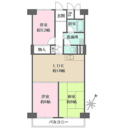 廊下部分を短く、住空間が広く確保された間取り。洋室・和室1室がLDKに隣接し、一体利用も可能です。