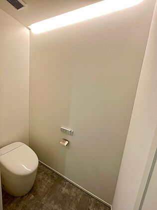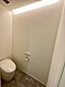 間接照明の付いた1階トイレはタンクレスで見た目もスッキリ♪