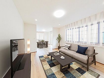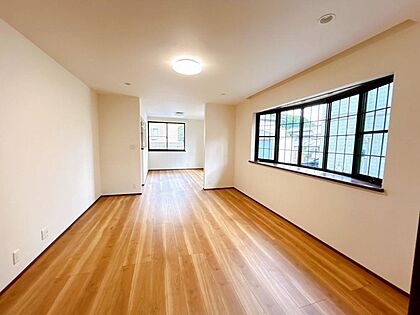 【リフォーム済み】リビングの写真です。約10帖の広さです。ダイニングと繋がりのある空間です。ダイニングキッチンと合わせて約21帖ございます。床フローリング貼り、壁天井のクロス貼替え、入口ドア交換済みで