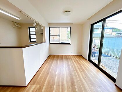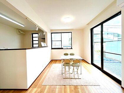 【リフォーム済み】リビングダイニングの別アングル写真です。2面採光で明るいダイニングキッチンです。