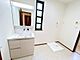 【洗面化粧台】洗面化粧台は新品に交換いたしました。三面鏡の裏側はすべて収納になっていて小物の整理に便利です。