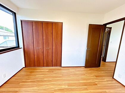 【リフォーム済み】2階南東側の洋室です。床はフロアタイル貼り、壁天井のクロス貼替をいたしました。クローゼット新設しました。主寝室にいかがでしょうか。