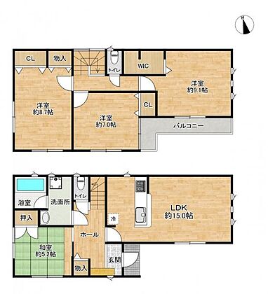 お洋服以外の物もたくさん収納できる、嬉しい広さのウォークインクローゼット!お部屋を最大限広くお使いいただけます!